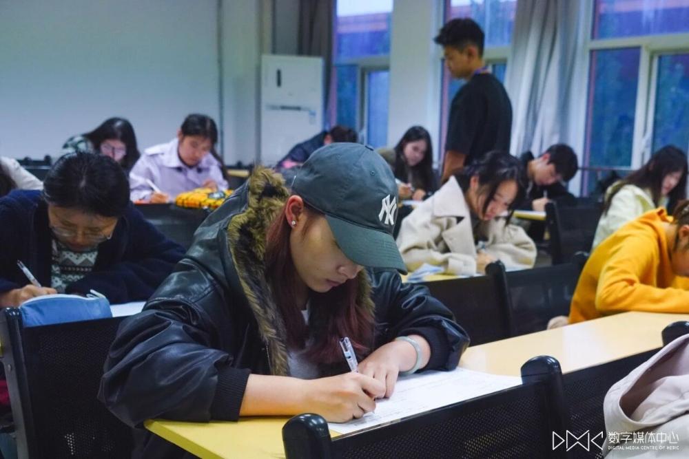 考场内秩序井然,监考人员认真负责。作答期间,同学们全神贯注,沉着冷静,将近期在团课培训中系统学习的理论知识充分运用。