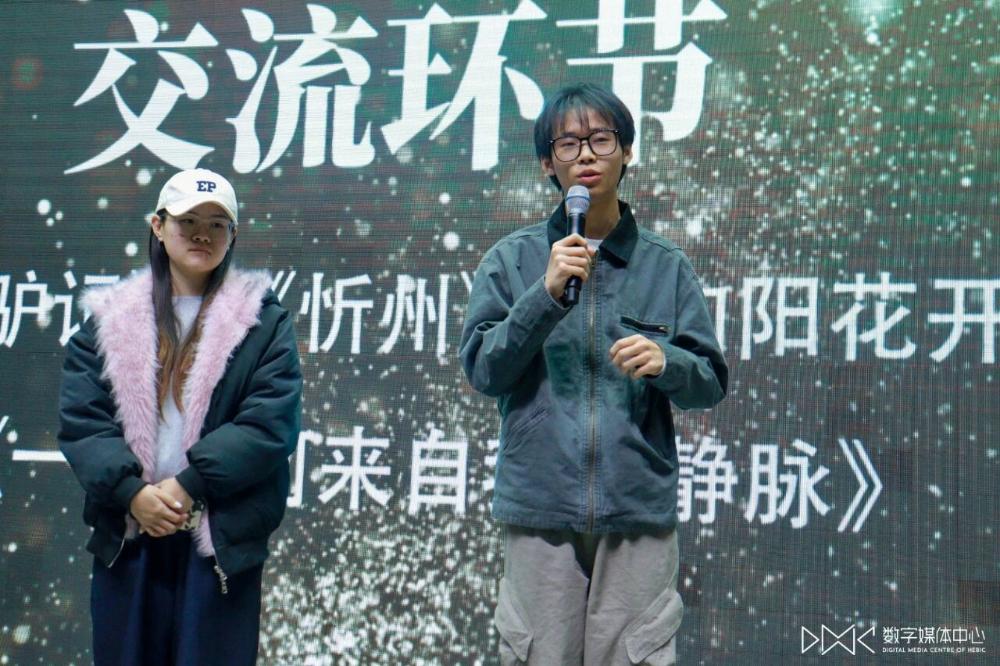 在AI创作单元,范学真同学以作品《追驴记》为例,讲述了从灵感到落地的全过程,展现了技术与艺术融合的无限可能;蒋明轩同学则围绕纪录片的“真诚”本质,分享了拍摄中的思考与收获。