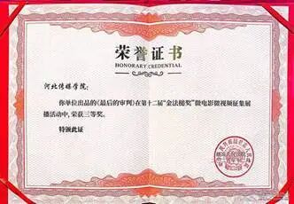 2024年12月17日上午,第十二届“金法槌奖”微电影微视频征集展播活动颁奖典礼在黑龙江省哈尔滨市全总(哈尔滨)劳模技能交流基地隆重举行。由河北传媒学院影视艺术学院师生参与策划拍摄的微电影《最后的审判》从全国1580部参赛作品中脱颖而出,荣获微视频类三等奖。这一荣誉不仅是对作品艺术质量与社会价值的充分肯定,更是河北传媒学院在深化实践教学、推动产教融合、践行“把学生推到舞台上,把舞台搭到社会上”育人理念进程中取得的又一标志性成果。